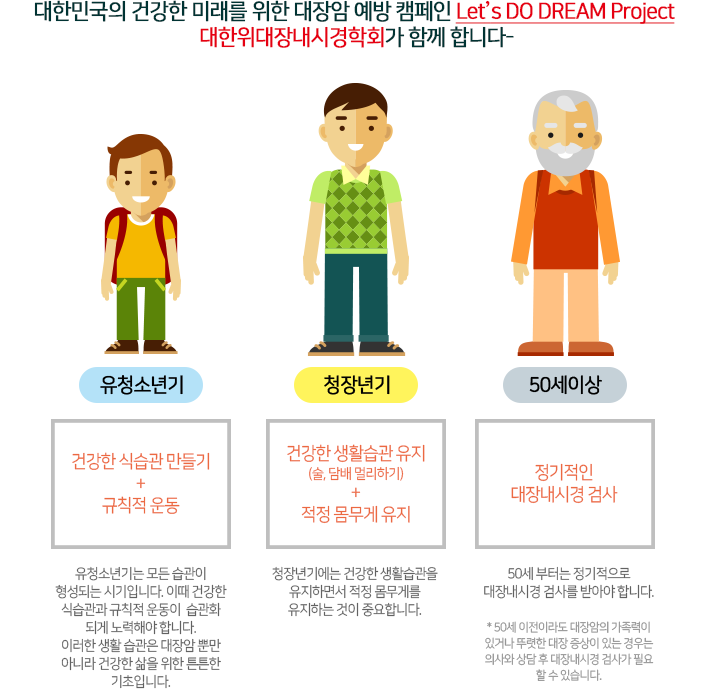 ÀÌ ´Ù¼¸ °¡Áö¸¦ ÅëÇØ ´ëÀå¾ÏÀ» ¿¹¹æÇÏÀÚ´Â ´ëÀå¾Ï ¿¹¹æ ÇÁ·ÎÁ§Æ®ÀÔ´Ï´Ù. DREAM project´Â ´ëÀå¾Ï »Ó¸¸ ¾Æ´Ï¶ó ¿ì¸®ÀÇ »îÀ» °Ç°ÇÏ°Ô À¯ÁöÇÏ´Â µ¥µµ µµ¿òÀÌ µÇ´Â À̸§ ±×´ë·Î ‘DREAM’À» ´ãÀº ÇÁ·ÎÁ§Æ®ÀÔ´Ï´Ù.