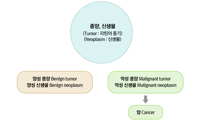 ¿ì¸® ¸ö ¾î´À ºÎÀ§¿¡¼³ª »ý±ä ¸ðµç ȤÀ» ÀÇÇÐÀûÀ¸·Ð Á¾¾ç(tumor)À̳ª ½Å»ý¹°(neoplasm)À̶ó°í ºÎ¸¨´Ï´Ù. Á¾¾çÀº Å©°Ô µÎ °¡Áö·Î ³ª´µ´Âµ¥ Çϳª´Â ¾ç¼º Á¾¾ç(Benign tumor)ÀÌ°í ´Ù¸¥ Çϳª´Â ¾Ç¼º Á¾¾ç(malignant tumor)ÀÔ´Ï´Ù. ¾ç¼º Á¾¾çÀº ȤÀº ȤÀ̳ª ³ª»ÚÁö ¾ÊÀº ȤÀ¸·Î ÀϹÝÀûÀ¸·Ð Ưº°ÇÑ Ä¡·á°¡ ÇÊ¿ä ¾ø½À´Ï´Ù. ¾ç¼º Á¾¾çÀÇ ´ëÇ¥ÀûÀÎ ¿¹°¡ »ç¸¶±ÍÀÔ´Ï´Ù. ¹Ý¸é¿¡ ¾Ç¼º Á¾¾çÀº ÁøÇàÇØ¼ ¹®Á¦¸¦ ÀÏÀ¸Å°´Â ³ª»Û ȤÀ¸·Î ¹Ýµå½Ã Á¦°ÅÇØ¾ß ÇÕ´Ï´Ù. ´Ù¸¥ ¸»·Î ¾Ç¼º ½Å»ý¹°(malignant nepoplasm)À̶ó°í ºÒ¸®´Â ÀÌ ¾Ç¼º Á¾¾çÀÌ ¹Ù·Î ¾Ï(cancer)ÀÔ´Ï´Ù. Áï ¾Ç¼º Á¾¾ç¸¸ÀÌ ¾ÏÀÌ°í ¾ç¼º Á¾¾çÀº ¾ÏÀÌ ¾Æ´Õ´Ï´Ù.